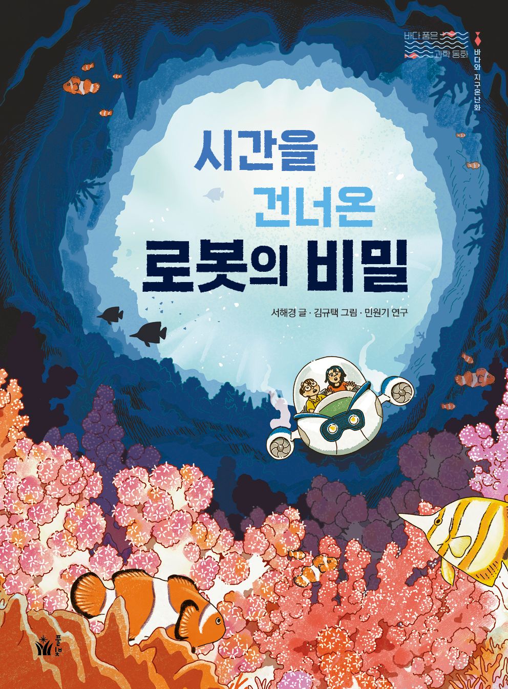 ‘바다 품은 과학동화’의 첫 권 <시간을 건너온 로봇의 비밀>은 미래의 KIOST에서 파견된 로봇 ‘키오’가 기후변화로 훼손된 해양생태계를 되살리기 위한 임무에 나서는 이야기다. 도서출판 풀빛이 함께 펴냈고, KIOST 동해환경연구센터 민원기 박사의 연구를 토대로 서해경 작가가 글을, 김규택 작가가 그림을 그렸다. 모험 서사를 따라가며 해양생태계 위기의 원인과 대응을 자연스럽게 이해하도록 구성했다.