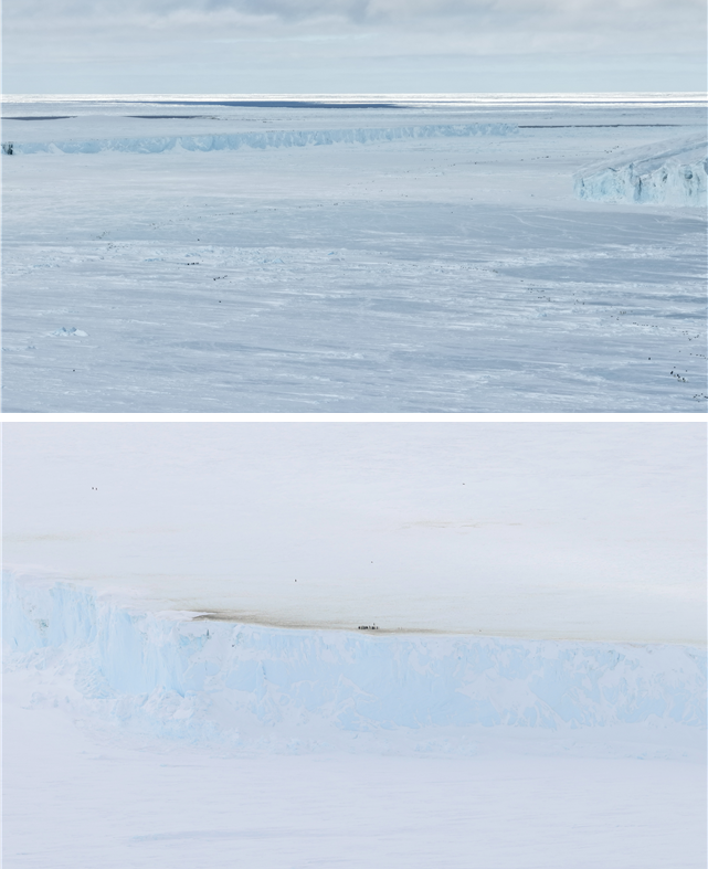 드론 촬영 사진에서는 빙산 절벽에 막혀 번식지로 돌아가지 못한 수십~수백 마리의 성체와 장기간 체류를 보여주는 배설 흔적도 확인됐다.