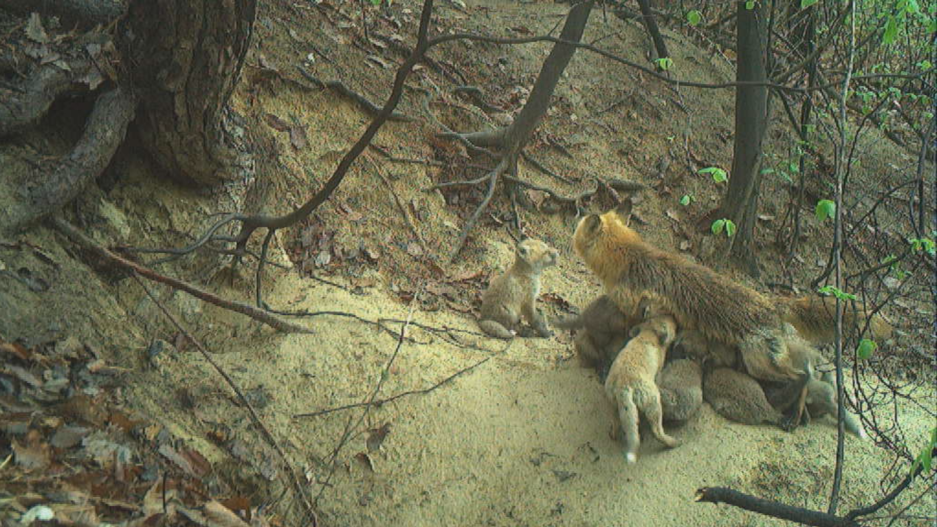 공단이 공개한 영상 가운데 가장 눈길을 끄는 장면은 소백산 여우의 대가족 양육 영상(2024년 4월 16일 촬영)이다. 영상 속 어미 여우(6세 추정)는 굴 주변에서 무려 12마리의 새끼를 젖 먹이며 돌보고 있다.