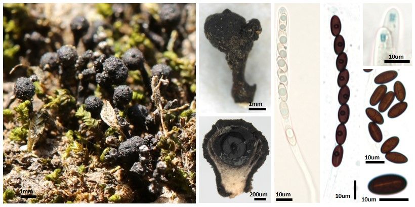 새로 보고된 ‘광릉콩꼬투리버섯’은 참나무류의 고사목에서 자라는 아주 작은 버섯이다. 크기는 약 5㎜로 검은색 짧은 대 위에 둥근 머리를 가진 독특한 형태다. 형태와 유전자 분석 결과, 기존에 알려진 종들과 명확히 다른 신종임이 확인됐다.