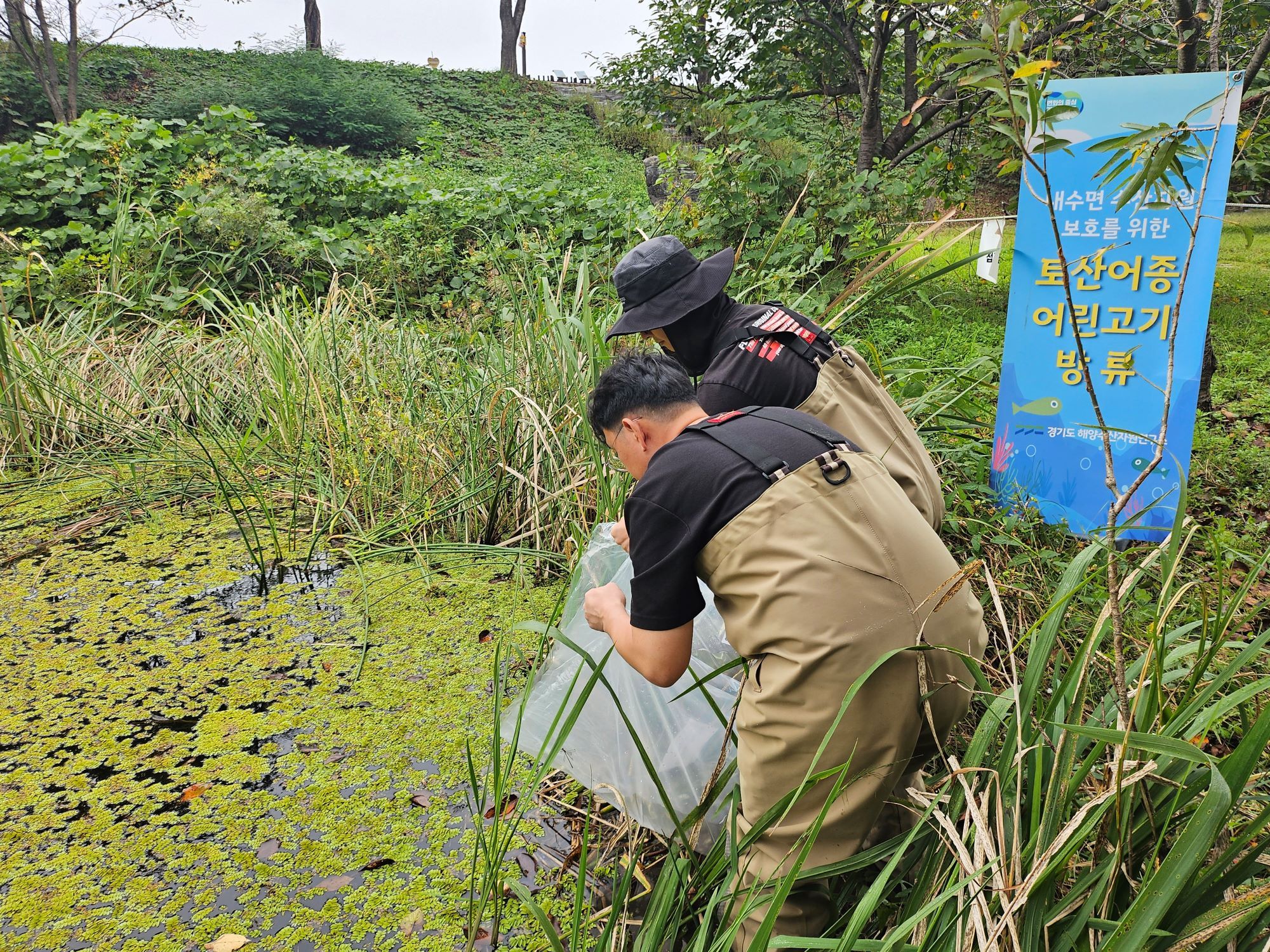 경기도해양수산자원연구소가 토종 민물고기 보존과 하천 생태계 복원을 위해 버들붕어 치어 1천 마리를 방류했다.