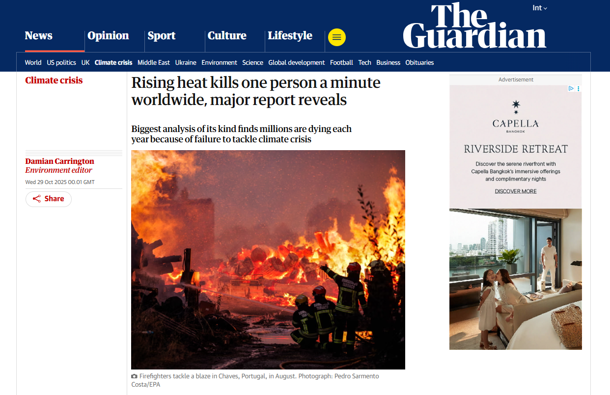 영국 일간지 가디언은 29일 “이 통계는 기후위기가 이제 건강위기로 번졌음을 보여주는 경고음”이라고 전했다.