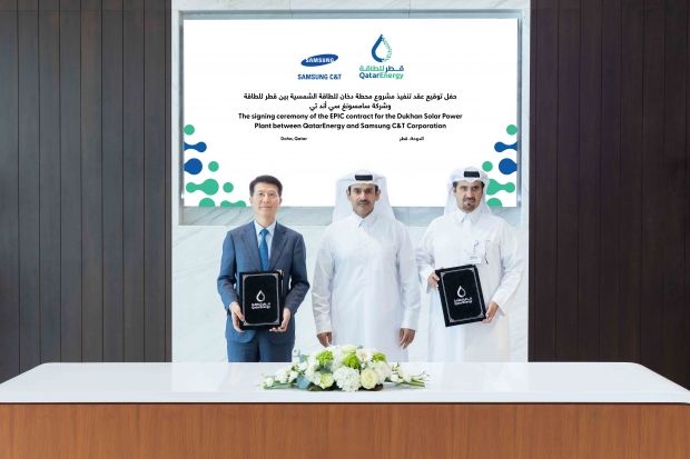 17일 삼성물산은 카타르 국영에너지회사 카타르에너지(Qatar Energy)가 발주한 발전용량 2000MW 규모의 태양광 발전 사업에 대한 낙찰 통지서를 수령하고, 계약 서명식을 진행했다고 밝혔다. EPC(설계·조달·시공) 계약 금액만 약 1조4600억원에 이른다.